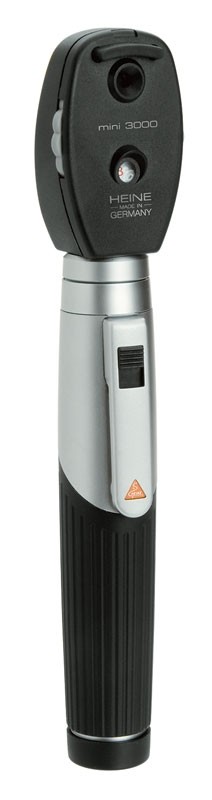 HEINE mini 3000 Ophtalmoscope with maintenance-free LED illumination. LED Thermal management for a consistent light output throughout the whole working life. HEINE has set a new standard which maintains that only the best is good enough, from the selection of materials to processing, from light intensity and thermal management to a colouring index as high as possible. Exclusive battery performance indicator: When the instrument is switched on, the maximum light intensity is shown, the the light intensity is regulated down to the level that corresponds to the current charge status of the battery so you know when your batteries need changing. Fade-out feature: Brightness reduces slowly even with low residual capacity, for even more efficient use of dry or rechargeable batteries. Operation time typ. 10 h. The batteries need to be changed less often and the rechargeable batteries last longer.